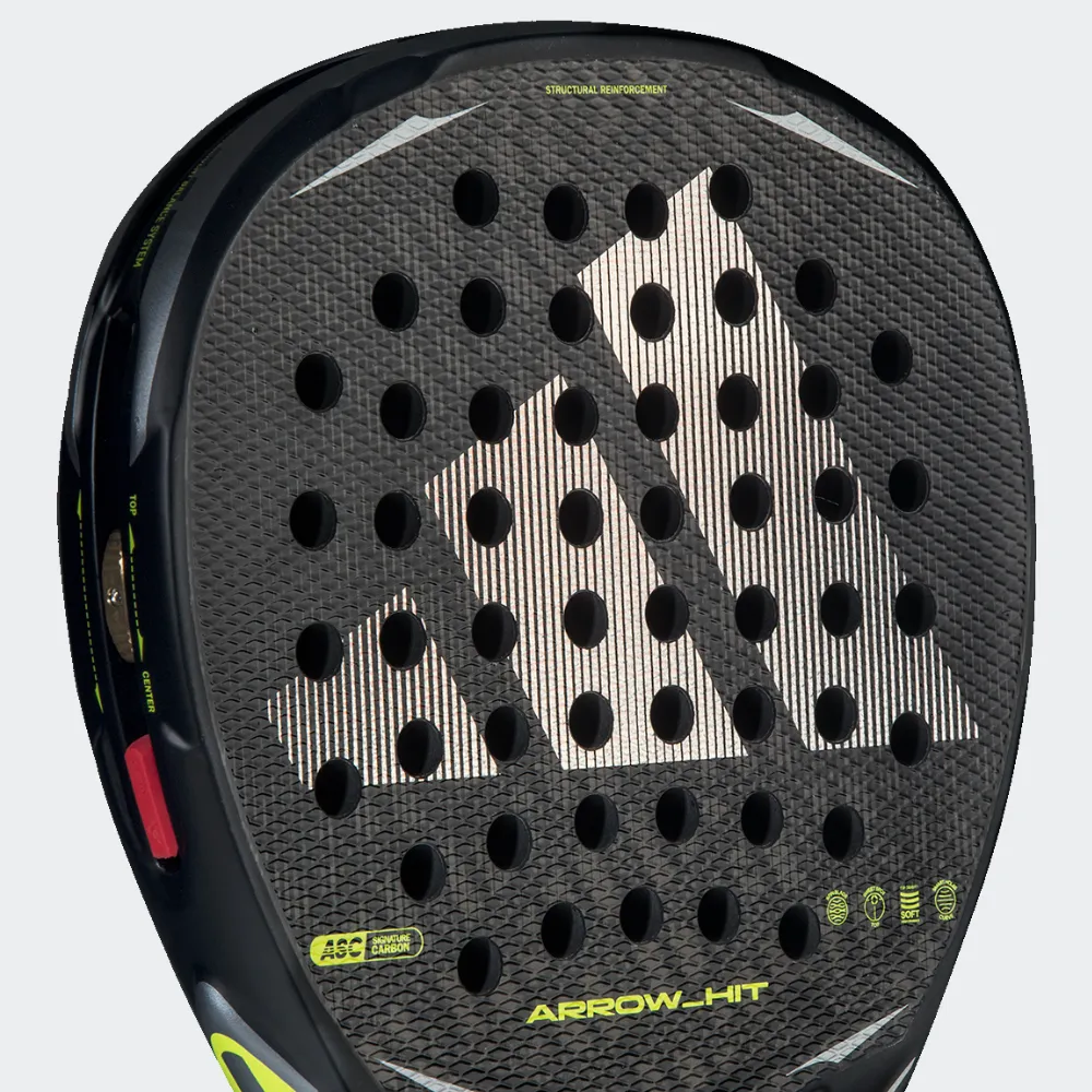 Dominuokite padelio korte su Adidas Arrow Hit 2026.„Intelligent Balance System“ sistemos pagalba, galėsite reguliuoti raketės balansą pagal savo stilių ir strategiją, lengvai keisdami šoninį svorio pasiskirstymą žaidimo metu. Raketės deimanto forma, kartu su MSC sistema, užtikrins greitą kamuoliuko atšokimą ir didesnę galią puolamiesiems smūgiams bei užtikrins tikslesnius smūgius.